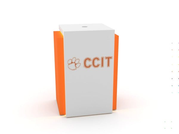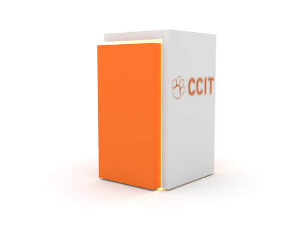 This modern wireless charging counter combines sleek design with practical functionality, making it an ideal addition to any trade show exhibit. It features built-in wireless charging pads, allowing attendees to conveniently power their devices while engaging with your brand. The counter is equipped with LED edge lighting, highlighting its customizable graphic wrap and creating a visually striking display. Inside, an interior wood shelf offers additional storage space, making it easy to keep materials organized and within reach. Constructed from eco-friendly materials, this counter is both durable and sustainable, providing a sophisticated solution for any exhibit space.