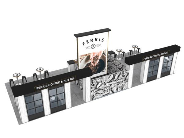 This Island exhibit blends sustainability with functionality, making it a perfect choice for impactful trade show presentations. It features a large private meeting room with two locking entry doors, offering a secure and comfortable space for client meetings or presentations. The exhibit also includes a sleek counter for interaction and product displays. Four wireless charging tables are strategically placed for convenience, allowing attendees to power their devices while engaging with your brand. Two pillar sconces add elegant lighting, enhancing the overall atmosphere and highlighting your brand's presence. Built with lightweight recycled aluminum and vibrant tension fabric graphics, this exhibit is both eco-friendly and visually striking. Designed for easy assembly, it provides a versatile, sustainable solution for exhibitors seeking an impactful, environmentally responsible display.