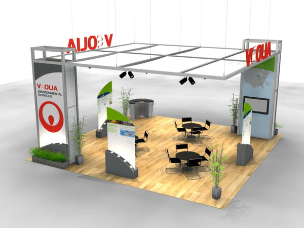 The Segue Island exhibit is a sophisticated and versatile trade show display designed to create a lasting impression and enhance brand visibility. Featuring a spacious open layout with bold graphics, this modular booth offers exceptional engagement from every angle. The exhibit includes a large monitor mount for dynamic product demonstrations, while stylish workstations are equipped with shelving, trays, and locking storage to keep the space organized and functional. One of its standout features is the floating (suspended) overhead ceiling with dimensional letters, adding a unique and eye-catching element that draws attention from across the trade show floor. The modular design ensures easy reconfiguration to suit different event sizes and needs, making it a flexible and professional solution for any brand looking to make a memorable impact.